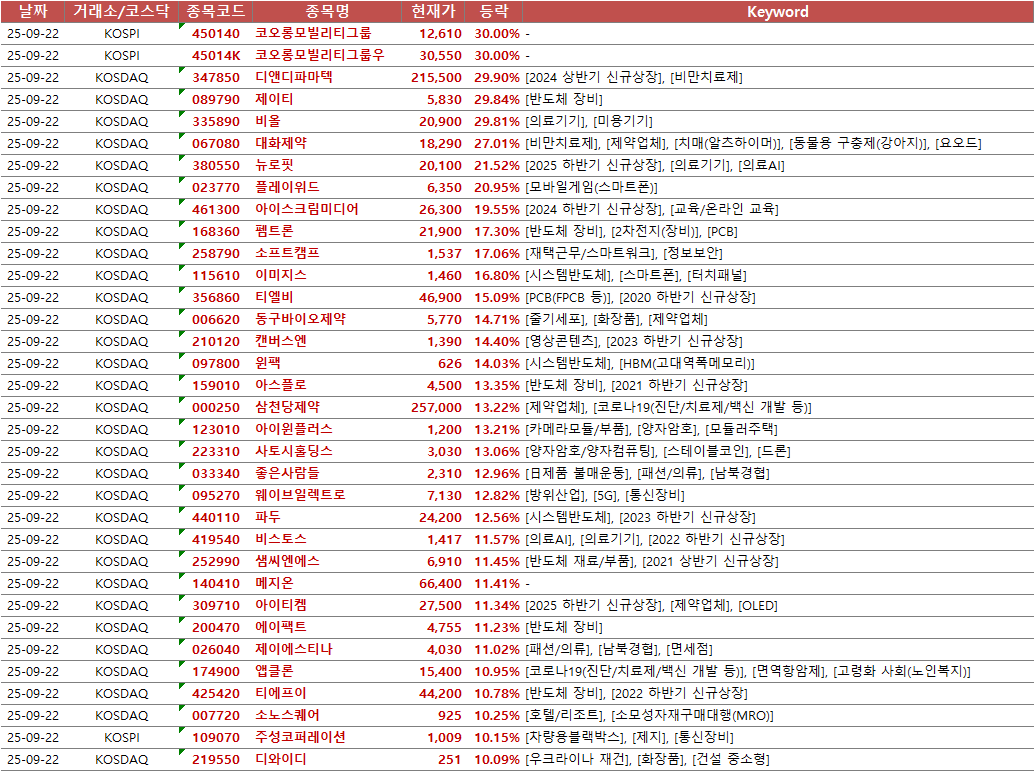 | [25-9-24] 오늘의 시황 (급등, 상한가) (2) | 2025.09.24 |