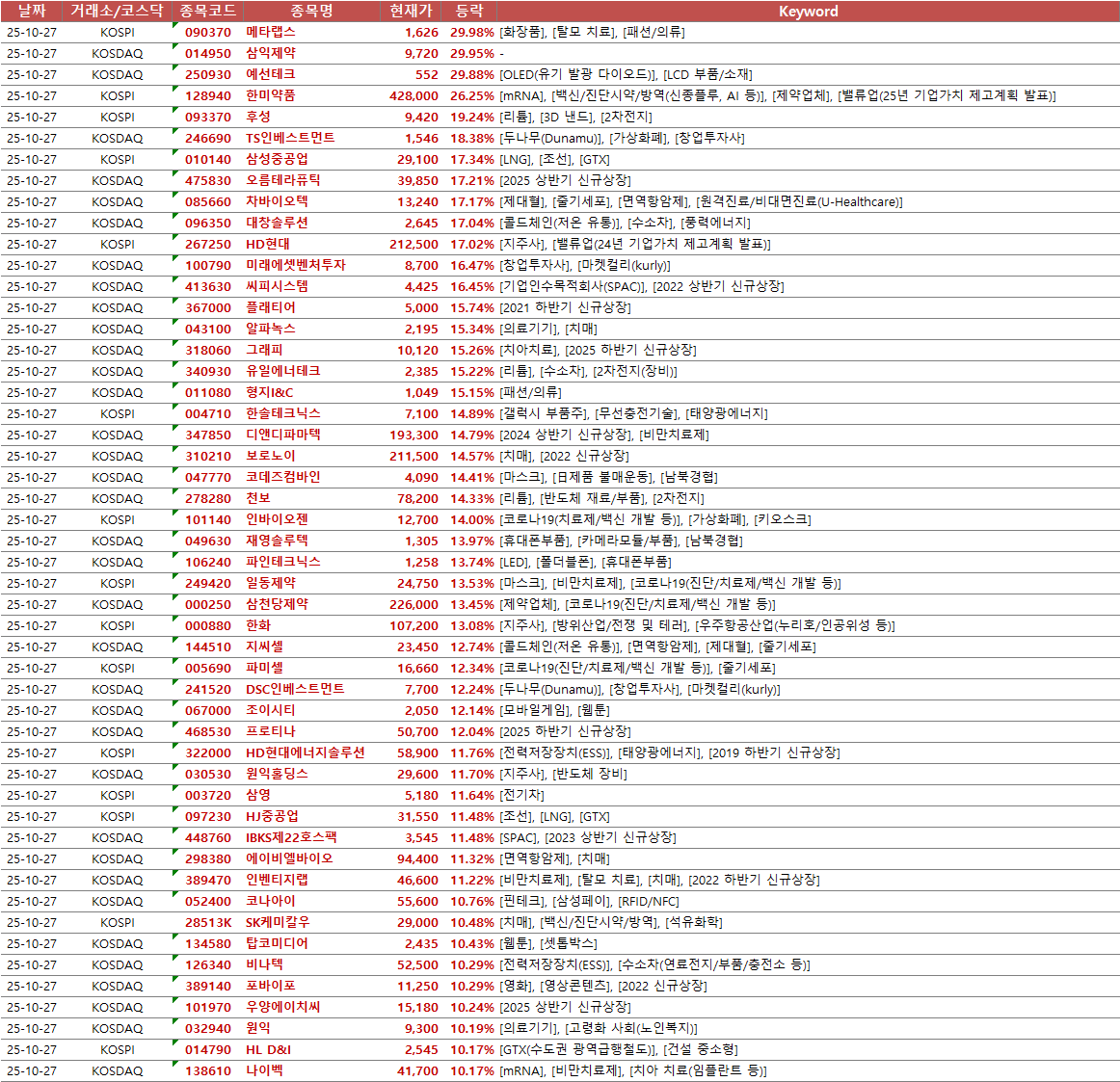 | [25-10-29] 오늘의 시황 (급등, 상한가) (0) | 2025.10.29 |