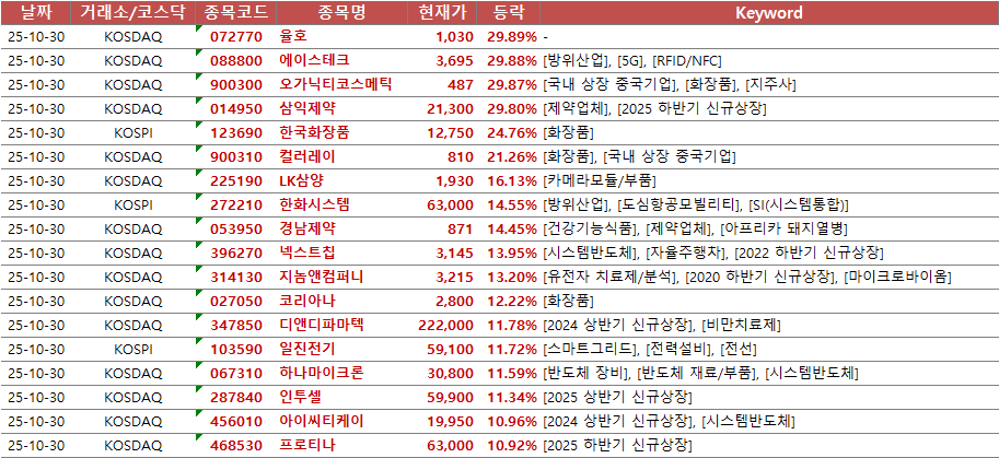| [25-10-31] 오늘의 시황 (급등, 상한가) (0) | 2025.10.31 |