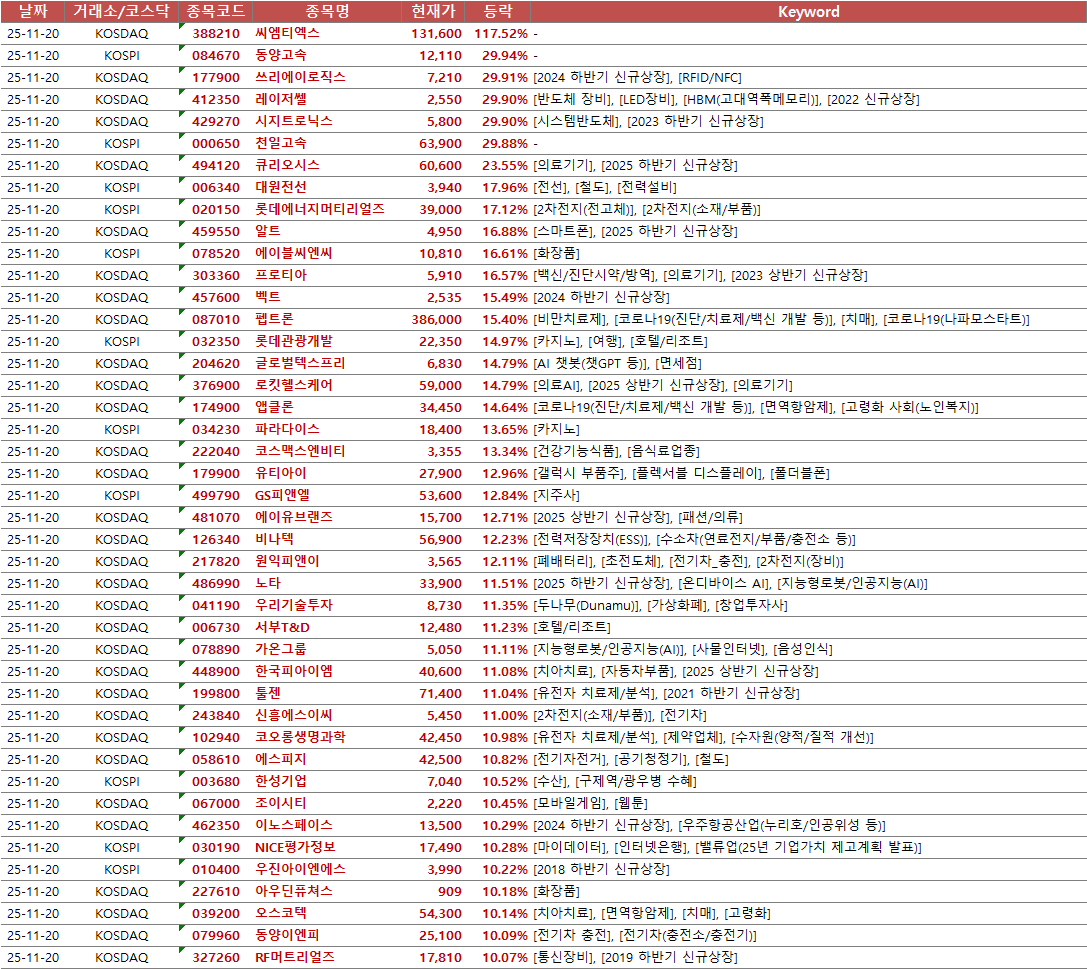| [25-11-21] 오늘의 시황 (급등, 상한가) (1) | 2025.11.21 |