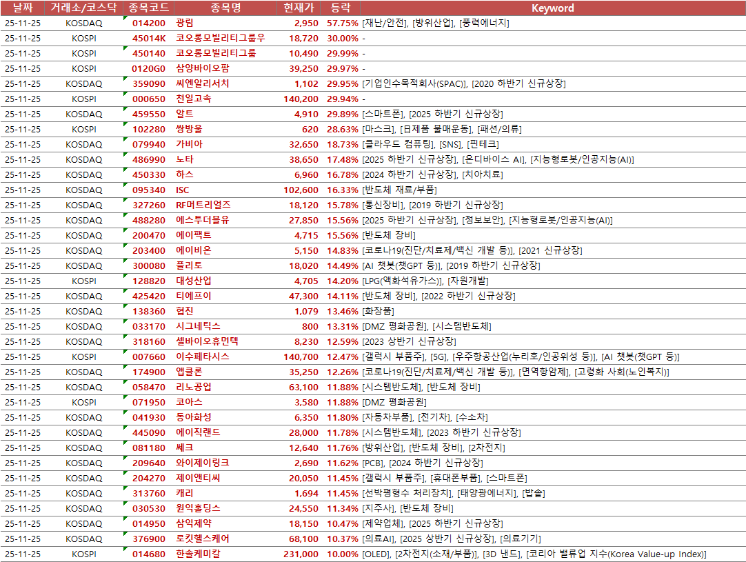 | [25-11-24] 오늘의 시황 (급등, 상한가) (0) | 2025.11.24 |