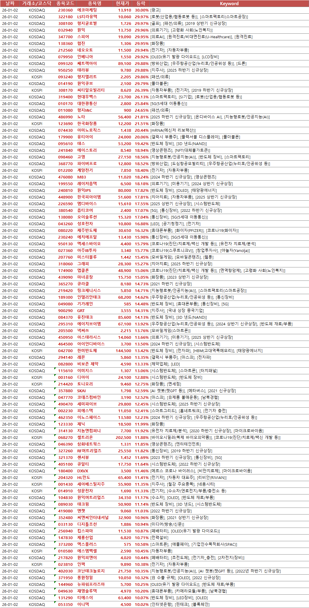 | [26-1-5] 오늘의 시황 (급등, 상한가) (1) | 2026.01.05 |