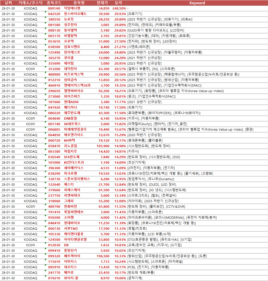 | [26-1-28] 오늘의 시황 (급등, 상한가) (0) | 2026.01.28 |