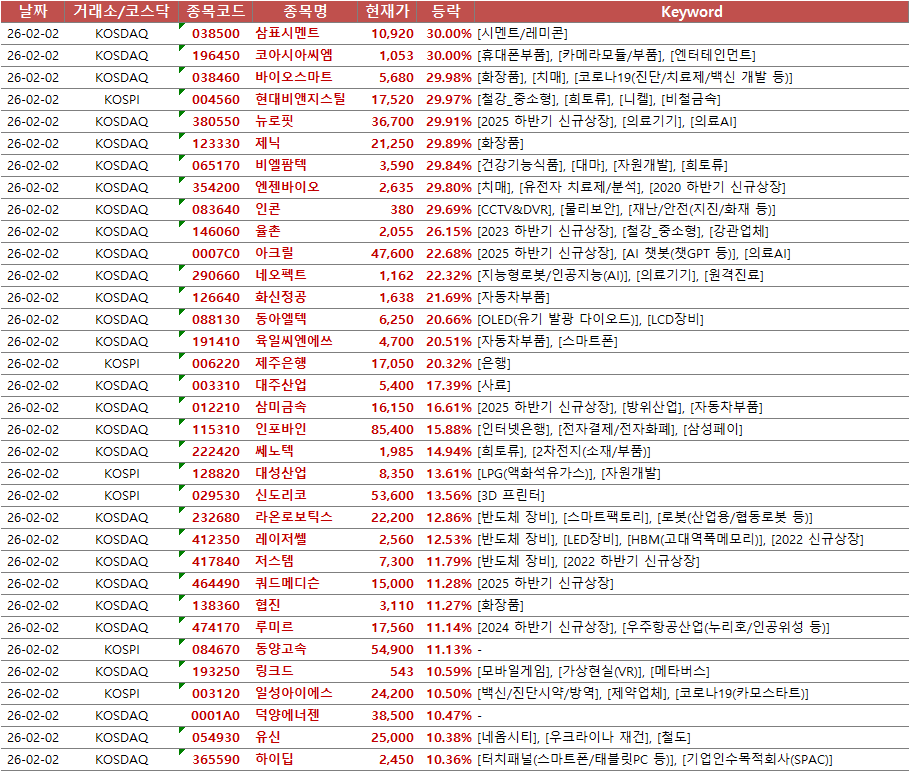 | [26-2-4] 오늘의 시황 (급등, 상한가) (0) | 2026.02.04 |