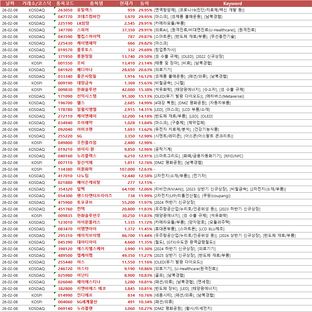 | [26-2-9] 오늘의 시황 (급등, 상한가) (0) | 2026.02.09 |
