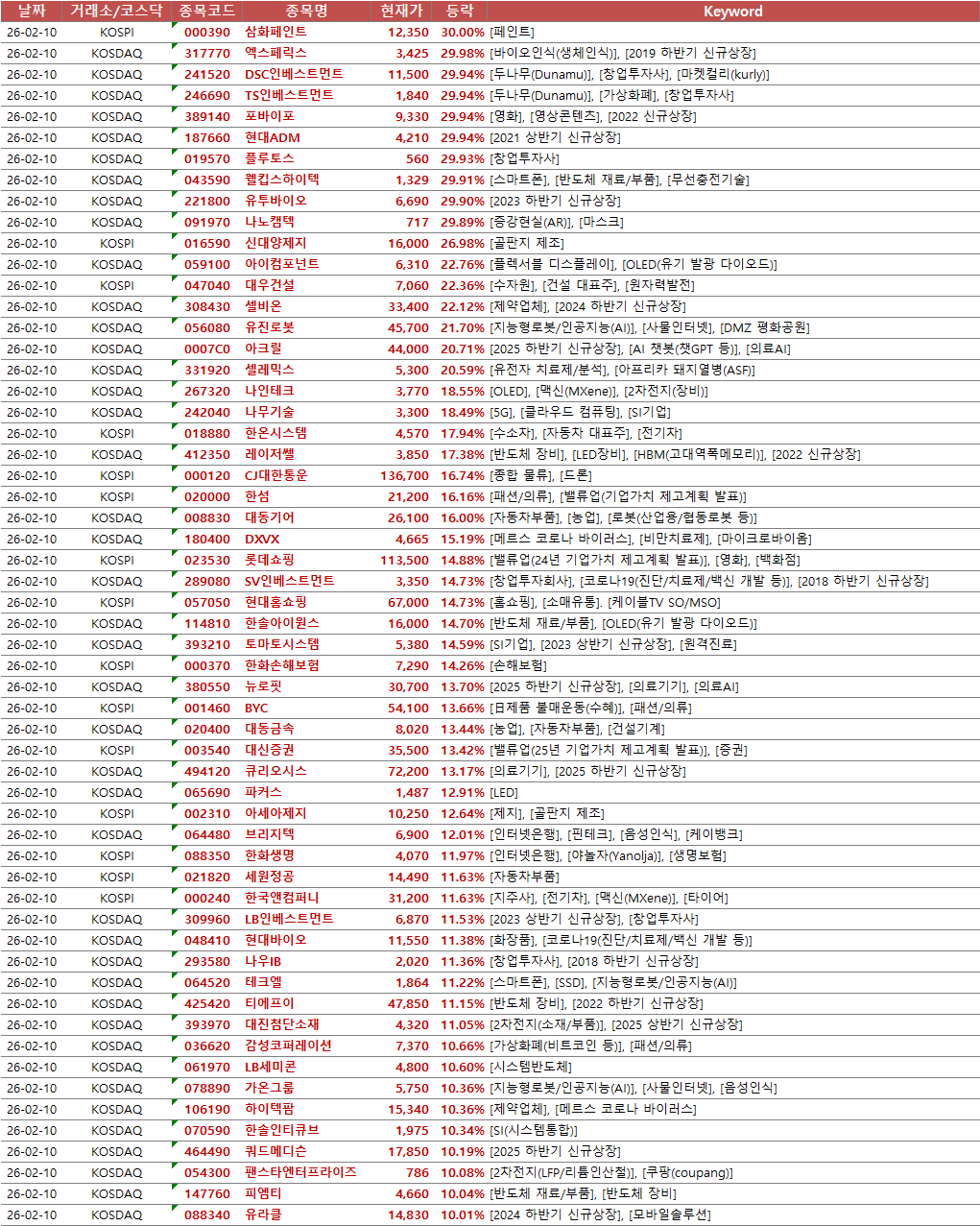 | [26-2-11] 오늘의 시황 (급등, 상한가) (0) | 2026.02.11 |