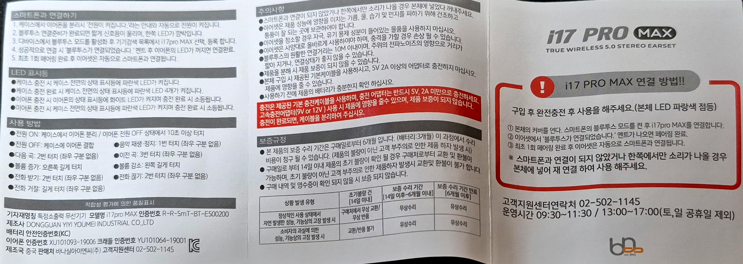 | KC인증/안전확인인증 | MSIP-R-R-B1n-BSNI17PRO / 이어폰: YU10911-19001 / 충전케이스: YU101064-19001 |